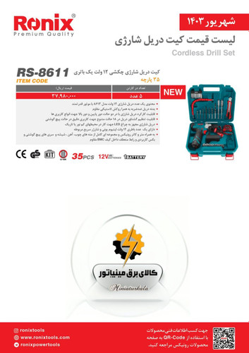 کیت دریل شارژی چکشی 12 ولت تک باتری 35 پارچه رونیکس مدل RS-8611