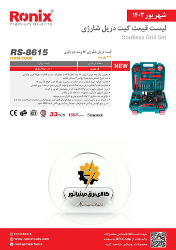 کیت دریل شارژی 16 ولت دو باتری 33 پارچه رونیکس مدل RS-8615