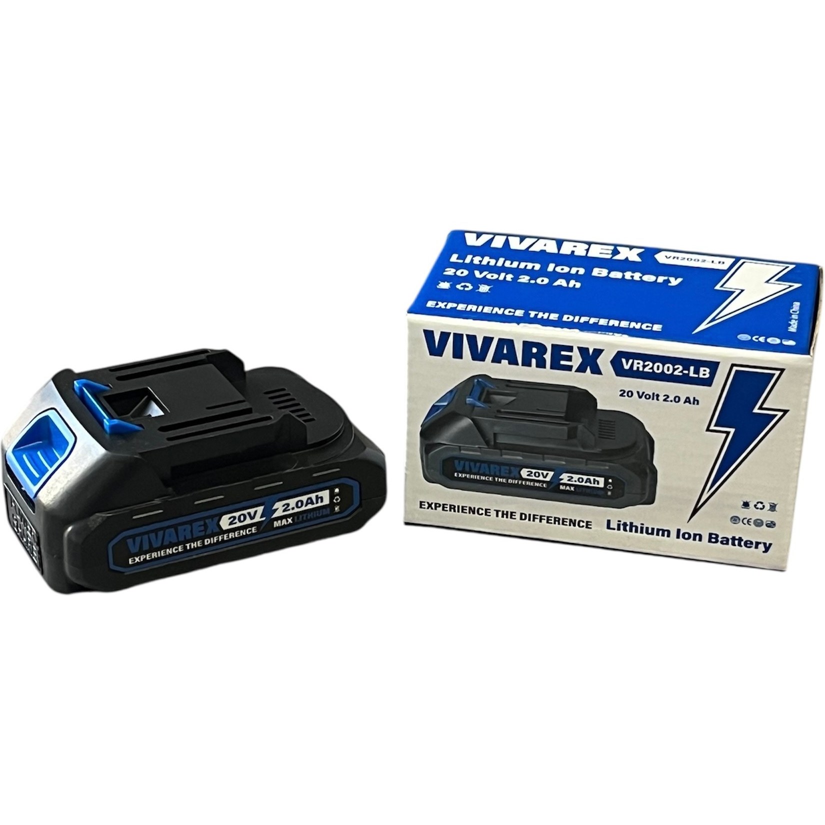 برند ویوارکس (Vivarex) مدل VR12002-LB ولتاژ 20 ولت ظرفیت 2 آمپر ساعت نوع باتری لیتیوم-یون نوع اتصال کشویی (Slide Type) مناسب برای ابزارهای شارژی 20 ولت ویوارکس کشور چین