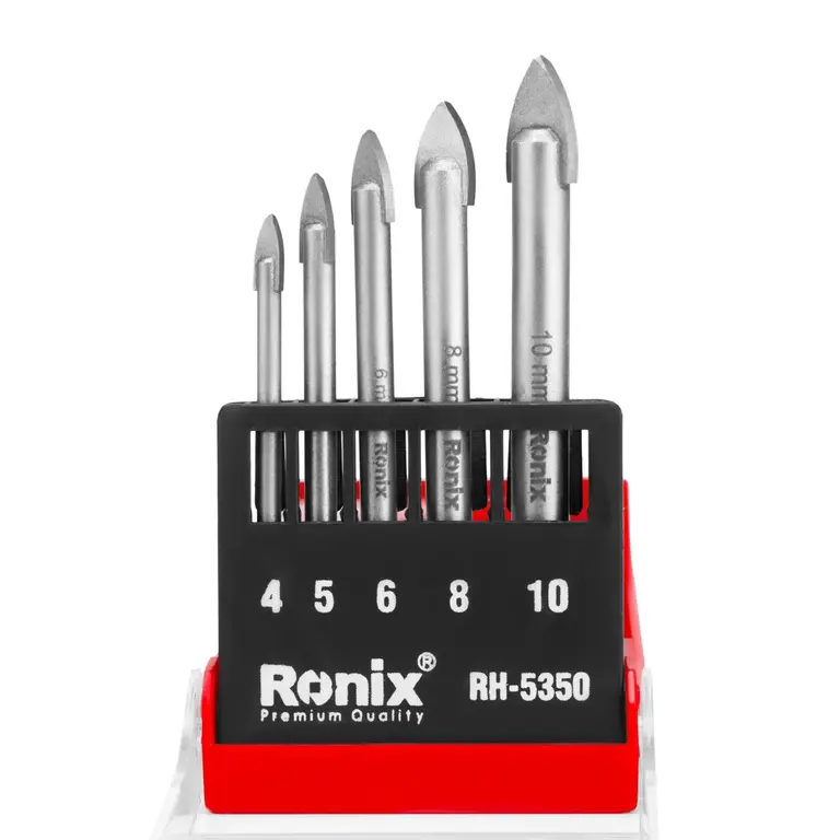 رونیکس انواع مته با کیفیت و کاربردی را تولید و به بازار عرضه کرده است. ست متۀ شیشۀ 5 عددی RH-5350 یکی از این تولیدات رونیکس است. از این متهها میتوانید برای انجام سوراخکاریهای دقیق و حساس روی موادی مانند سرامیک، شیشه، کاشی و آینه استفاده کنید.