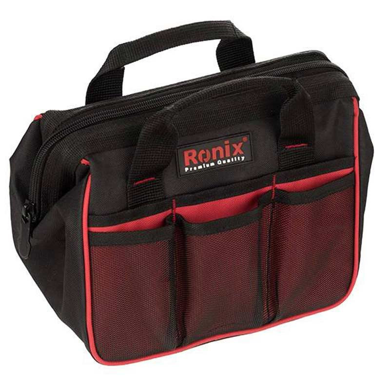 کیف ابزار رونیکس Ronix مدل RH-9118 با ابعاد ۲۸ * ۱۷ * ۲۰٫۵ سانتی متر و وزن ۵۱۵ گرم به راحتی قابل حمل بوده و می توان از آن در هر جایی استفاده نمود. شرکت رونیکس در ساخت این کیف از برزنت دولایه مقاوم استفاده نموده است، که در برابر رطوبت و سایش مقاوم می باشد. زیب بکار برده شده در کیف ابزار قابل حمل رونیکس از نوع صنعتی (پلاستیکی) بوده که انعطاف پذیری بیشتری نسبت به زیپ های فلزی خواهد داشت. علاوه بر این شما به راحتی می توانید این کیف را شسته و نگران از دست دادن کیفیت و رنگ آن نیز نباشید. Ronix RH-9118 دارای ده جیب در دو طرف کیف و یک محفظه بزرگ اصلی می باشد. از کاربر های جیب خارجی این است که کاربر می تواند برای برداشتن و گذاشتن ابزارهای کوچک بدون باز کردن زیپ از آنها استفاده کند.