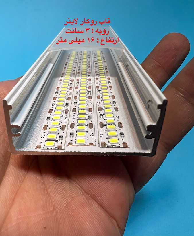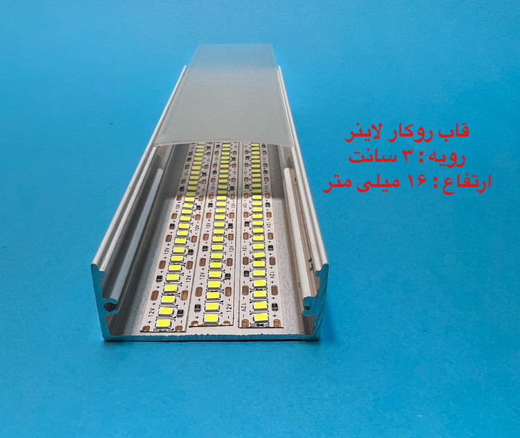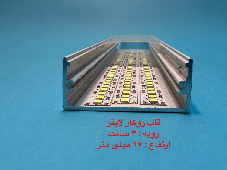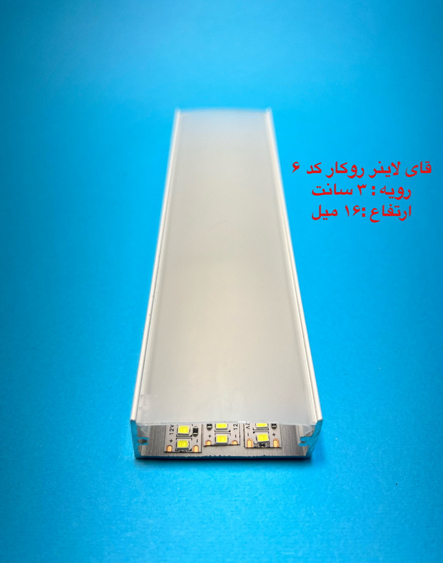 قاب چراغ لاینی کد ۶ روکار رویه ۳ سانتی ارتفاع ۱۶ میل تا شاخه ۳ متری و در سه رنگ ، سفید ، مشکی و نقره ای قابل عرضه می باشد ، لاین نوری روکار کد ۶ یکی از پر مصرف ترین لاینر های موجود میباشد ، روکار بودن و سهولت استفاده از آن یکی از بزرگترین مزیت های آن می باشد، طلق رویه امکان ارائه تا رول ۵۰ متری جهت مکان هایی که نیاز دارید طلق به صورت یک تکه روی کار قرار گیردموجود است . ارسال به کلیه نقاط کشور .