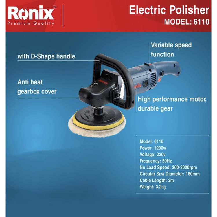 پولیش کاری از جمله کارهای فنی است که صبوری و دقت بالایی را در کنار یک دستگاه با کیفیت طلب می کند. پولیش و سایش بدنه خودرو، سطوح بتنی، چوبی و فلزی و... می تواند توسط یک شخص در خانه و یا یک مکانیک و تکنیسین حرفه ای انجام گیرد. اما برای راضی بودن نتیجه تنها مهارت کافی نیست چرا که به یک ماشین پوست و پولیش استاندارد و مرغوب هم نیاز است. در بین ابزارهای برقی پولیش بازار برند رونیکس چند مدل را به بازار عرضه کرده که دستگاه پولیش صفحه ای رونیکس 1200 وات مدل 6110 یکی از بهترین و پر فروش ترین آنها بین تمام خریداران است