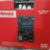 محتویات داخل جعبه شامل : دستگاه (دریل شارژی چکشی لیتیوم 18 ولت رونیکس)، شارژر دریل، دو عدد باتری، انواع مته (مته آهن، مته چوب، مته برگی)، رولپلاک و پیچ، بیت های دوسو و چهارسو، آلن بکسی که داخل یک عدد کیف BMC تقدیم کاربران محترم می شود.