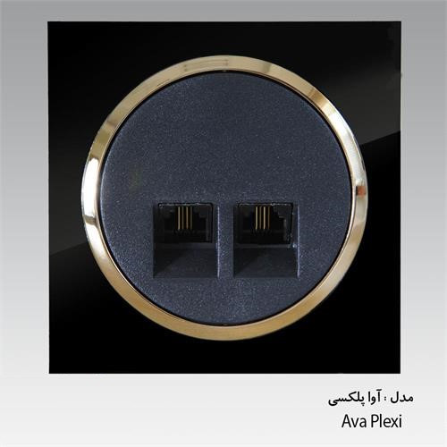 سوکت تلفن دوقلو(4خط)/آوا پلکسی مشکی زه طلایی