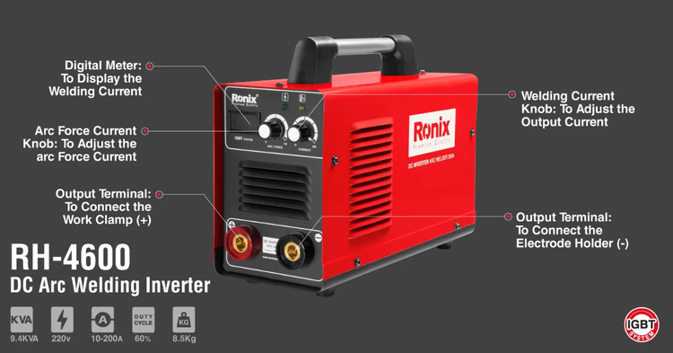 بخش زیر، برای آشنایی بیشتر با مشخصات فنی اینورتر جوشکاری 200 آمپر RH-4600 رونیکس، راهنمای خوبی برای شما خواهد بود.