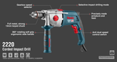 دریل گیربکسی 2220 رونیکس: موتور قدرتمند؛ کلیدهای همهکاره؛ حداکثر تعداد ضربه در حالت چکشی