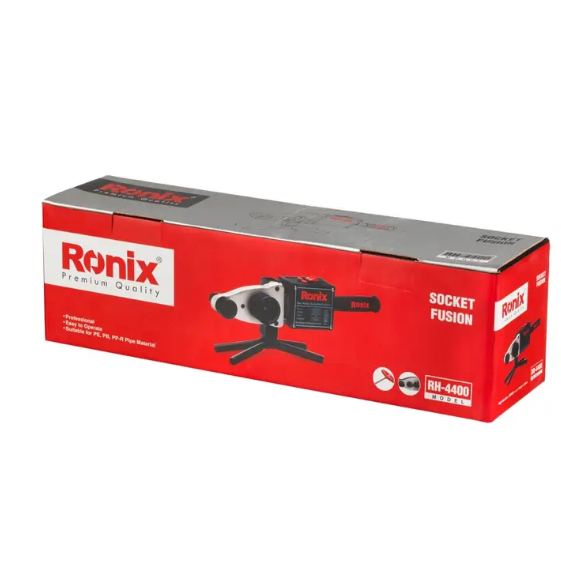 دستگاه جوش لوله سبز رونیکس تحت عنوان کد محصول RH-4400 مجهز به عایق مدور بسیار قوی در قسمت اتصال راکت حرارتی به بدنه جهت کاهش چشمگیر انتقال حرارت بین این دو قسمت و جلوگیری از اتلاف انرژی حرارتی حین کارکرد است. این دستگاه جوش لوله سبز از برند رونیکس همچنین مجهز به سیستم حرارتی پیشرفته بوده که با به کار گیری دو المنت قوی و مجزا و با توان الکتریکی بالا، حرارتی مناسب و یکنواخت حین انجام اتصالات به وجود می آورد. استفاده از راکت حرارتی با سایزی بسیار بزرگتر از نمونه های مشابه در برندهای دیگر موجب افزایش اثربخشی عملکرد این دستگاه شده و باعث انجام جوشی یکنواخت در اتصالات لوله ها می شود.