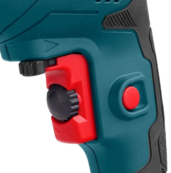 مجهز به کلید گازی ضد غبار و دیمردار به منظور خاموش/روشنکردن ابزار و تنظیم دقیق سرعت متناسب با استفاده در سطوح مواد مختلف؛ اهرم چپگرد/راستگرد جهت بازکردن و بستن پیچ؛ دکمهی قفلکن سرعت برای روشنماندن دریل در طول استفاده مداوم