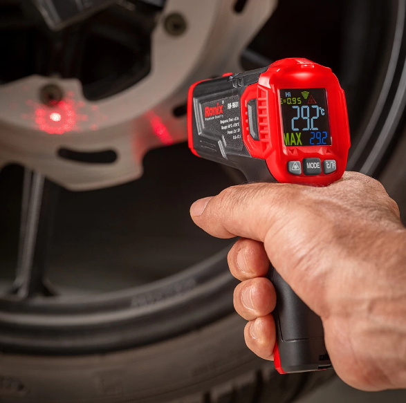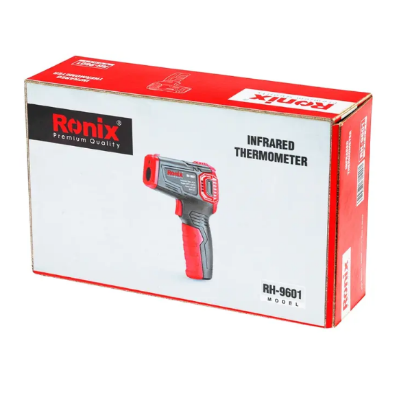 ترمومتر دیجیتالی لیزری رونیکس مدل RH-9601 با صفحه نمایش بزرگ و نور پسزمینه قابل قبول، امکان اندازهگیری دقیق دما را بر روی سطوح مختلف مانند مواد غذایی منجمد، شیشه، آهن، سنگ مرمر، خاک رس، برنج، چوب و … فراهم میکند.