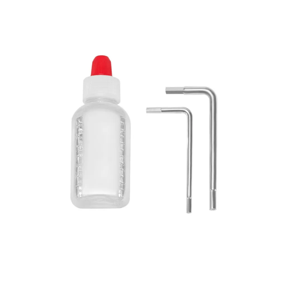 ارائه شده در جعبه رنگی رونیکس همراه با آچار 3 و 4 میلیمتر، بطری روغن 30 میلیلیتری، شلنگ باد 7.5 متری
