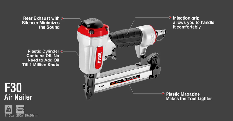انتخاب ابزار با طراحی ارگونومیک در مداومتهای کاری اهمیت فراوانی دارد. میخکوب بادی اسکا F30 جیت، به خاطر طراحی مناسب و هوشمندانۀ آن، بسیار کموزن و در عین حال، قدرتمند است.
