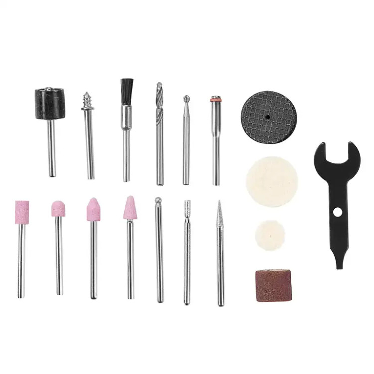 مجهز به موتوری موثر که سرعتی بالغ بر 5000-30000 دور در دقیقه ارائه می دهد دستگاهی با کارایی بالا، سبک وزن و مناسب برای کاربریهای مختلف مجهز به بلبرینگ ضد غبار که نفوذ گرد و غبار را کاهش داده و دوام موتور را افزایش میدهد مجهز به سیستم تغییر دور آنالوگ جهت تنظیم سرعت متغیر از 5000 تا 30000 دور در دقیقه که سرعت دستگاه را برای سازگاری با نیازهای مختلف کاربر تنظیم میکند شامل 26 عدد متعلقات کاربردی مختلف برای سنبادهزنی، برش، صیقلدادن، کندهکاری، پرداخت و تمیز کردن سطوح مختلف چوبی و فلزیمجهز به سیستم قفل شفت برای تعویض سریع و آسان متعلقات با ایمنی و دقت بیشتر دارای کولت یا ابزارگیری با ظرفیت 3.2 میلیمتر برای استفاده از انواع متعلقات دارای ابزار برشی مختلف جهت ایجاد سوراخ با شکل های مختلف روی چوب