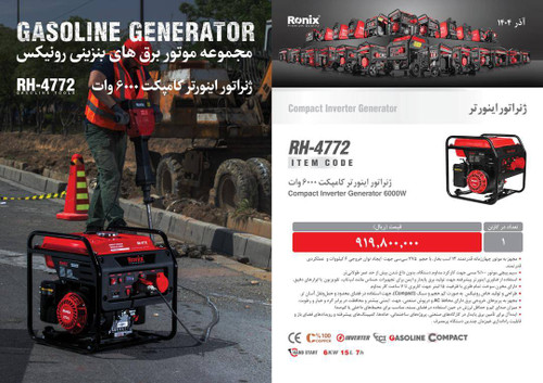 ژنراتور بنزینی رونیکس مدل RH4772 ظرفیت ۶۰۰۰ وات