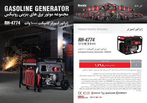 ژنراتور بنزینی رونیکس مدل RH4774 ظرفیت ۱۰ کیلووات تک فاز اینورتر