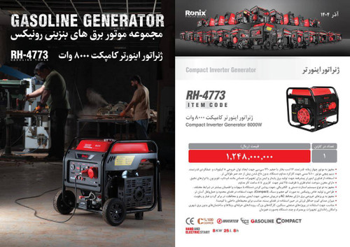 ژنراتور رونیکس مدل 4773 ظرفیت ۸۰۰۰ وات تک فاز